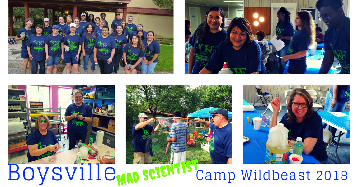 Twenty-five ADKF volunteers spent their day as Mad Scientist at the Boysville Camp Wildbeast this summer. Countless hours were spent by lead scientists to prepare activities for the children at Boysville ranging in ages from 4-12. Several of the activities involved our accountants conducting mini-experiments before the big day. The children had the opportunity to make their own custom lab coat, crystals, unpoppable bubbles, straw rockets, slime, lava bottles, exploding Mentos and diet coke experiments, and bell pepper volcanos. Boysville children enjoyed learning and playing with positive role models and the volunteers loved spending the day getting crafty and giving their ten-key a break. Camp Wildbeast gives Boysville supporters the opportunity to supply the materials, activities, volunteers, and lunch for the day to the children.
