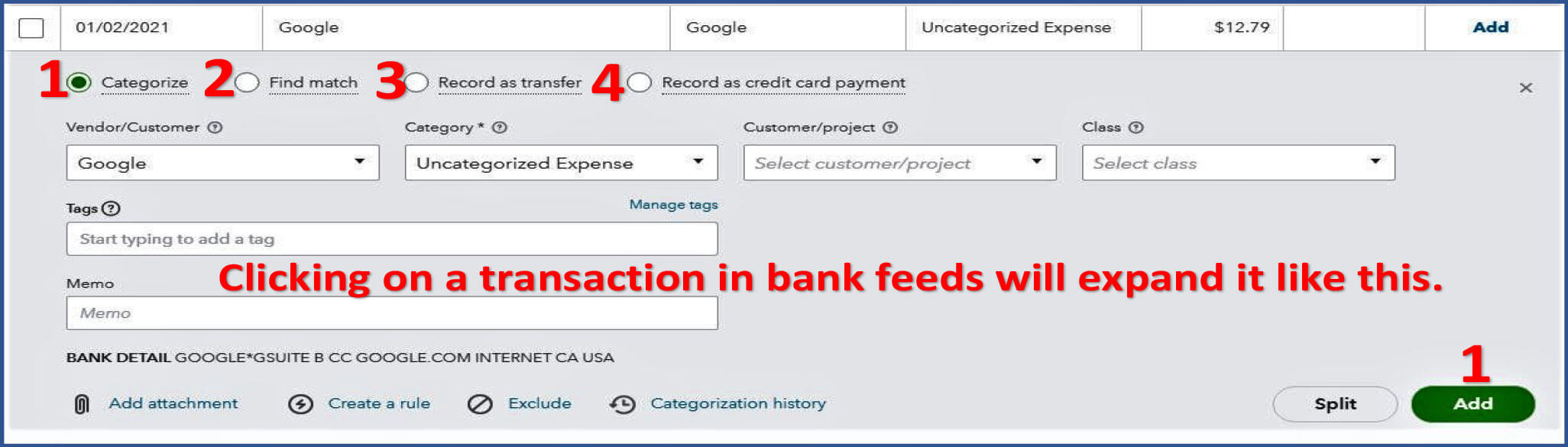 Taking a few minutes to pay attention to details when adding transactions from the bank feeds page into your books can save a lot of time and agony later.