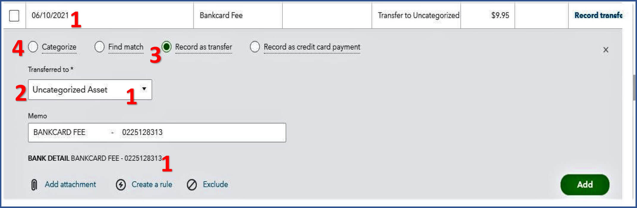 3. Record as Transfer and ADD.