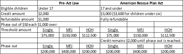 The bill directs the Treasury and the IRS to begin monthly payments, if possible, on July 01, 2021. This advanced payment consists of only half of the credit, the remaining half is to be received when filing 2021 tax returns.