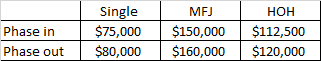 Income limitations for Recovery rebates: