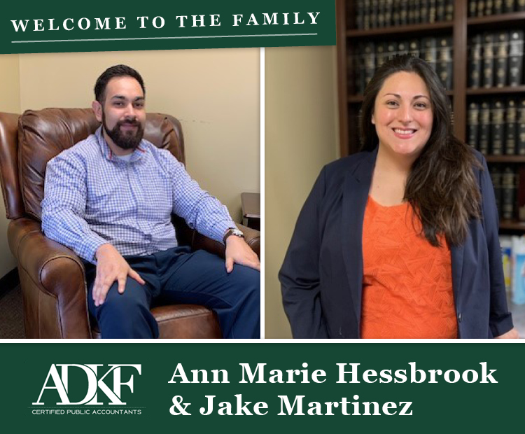 We want to welcome our new Tax Senior, Jake Martinez, and our Summer Tax Intern, Ann Marie Hessbrook!
